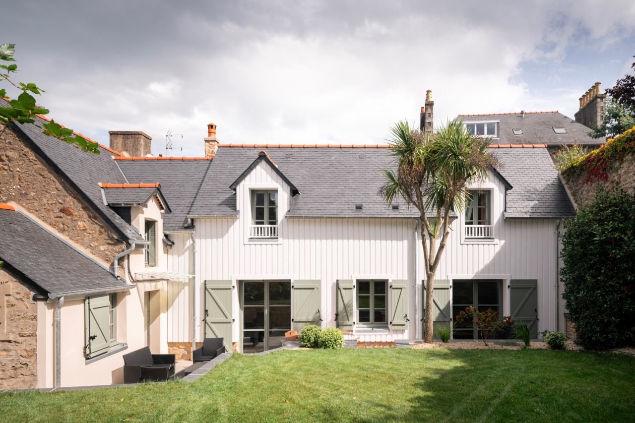 Le projet comprend cinq chambres, trois salles d’eau et une surface optimisée jusque dans les moindres détails. L’extension, réalisée en ossature et bardage bois avec un parement en pierres de pays en allège, s’intègre harmonieusement dans son environnement, situé en secteur ABF.